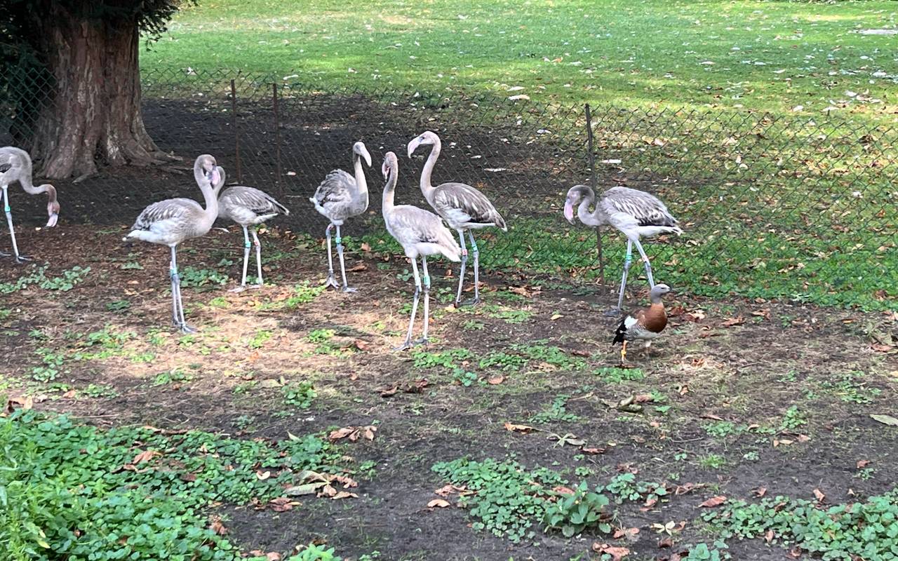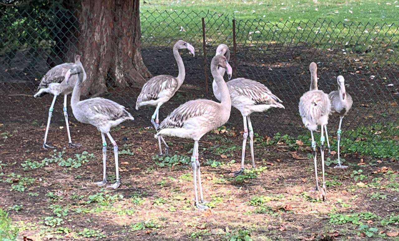 Sie sind ab sofort draußen in der Flamingo-Anlage am Zoorestaurant. Ein Jahr lang bleibt ihr Gefieder wohl noch grau, bevor sie sich dann rosarot färben. Dafür mischen die Pfleger in Köln extra noch Farbstoffe ins Futter. Die Jungtiere haben gute Chancen, im Zoo über 60 Jahre alt zu werden. Gut 160 Flamingos leben hier in zwei Gruppen.