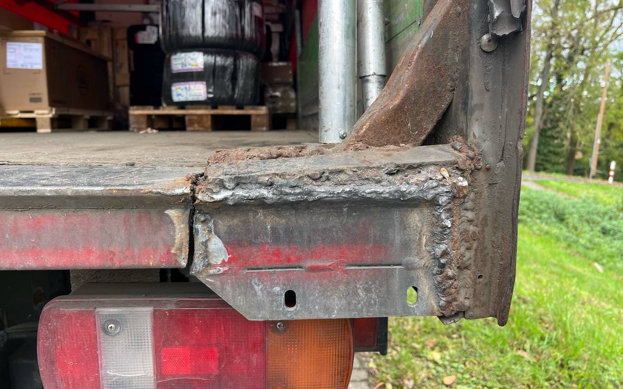 Ein schiefer LKW mit stümperhaft zusammengeschweißter Hebebühne und rostigen Verschlägen. Die Polizei im Rhein-Sieg-Kreis hat den fast schon schrottreifen LKW aus dem Verkehr gezogen und damit möglicherweise Schlimmeres verhindert.