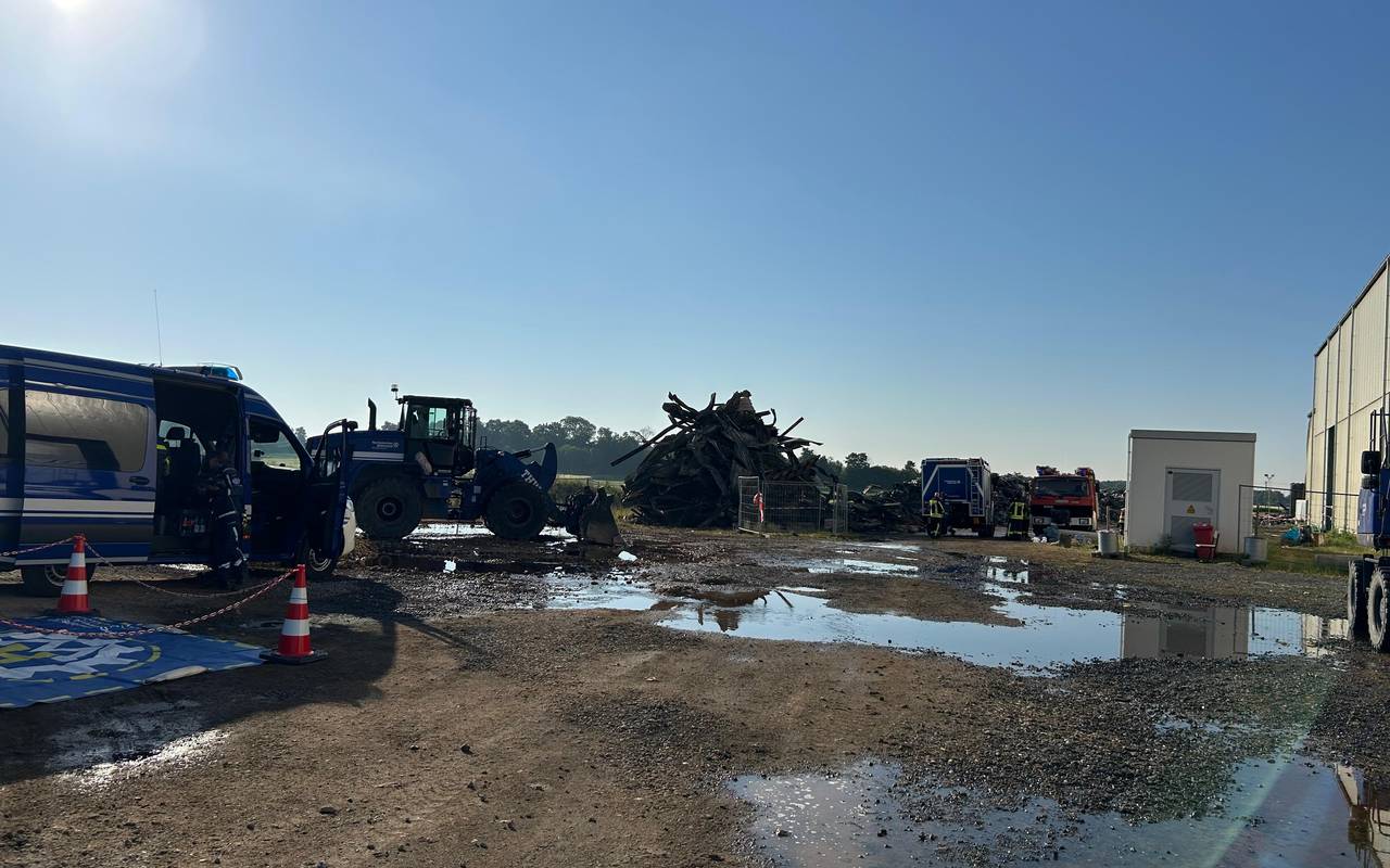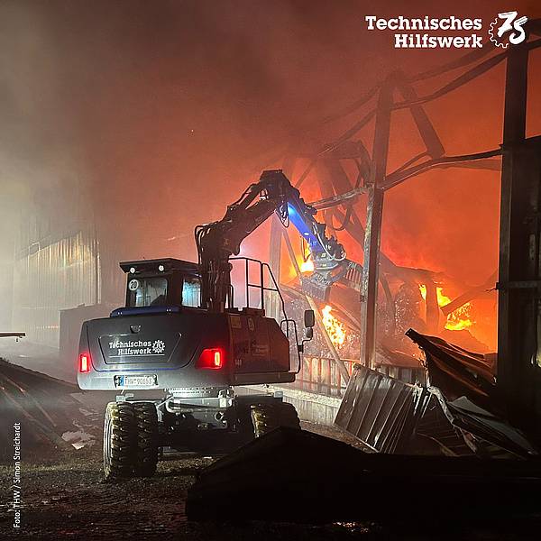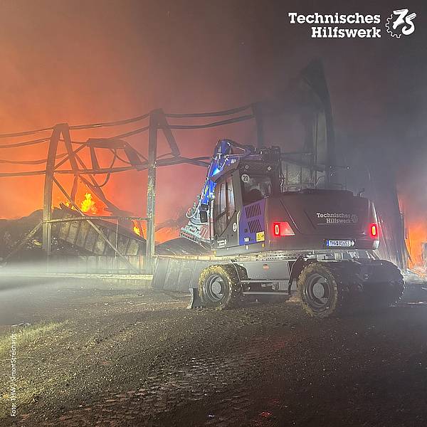 In Swisttal sind weiterhin Einsatzkräfte vor Ort bei dem Entsorgungsunternehmen, in dem am Samstagnachmittag ein Feuer ausgebrochen war. Die Leitstelle berichtete, dass das Technische Hilfswerk dabei ist, den dort in Halle gelagerten Müll herauszubringen, damit die Feuerwehr alles vor der Halle ablöschen kann. Dafür ist das THW mit Radladern im Einsatz.