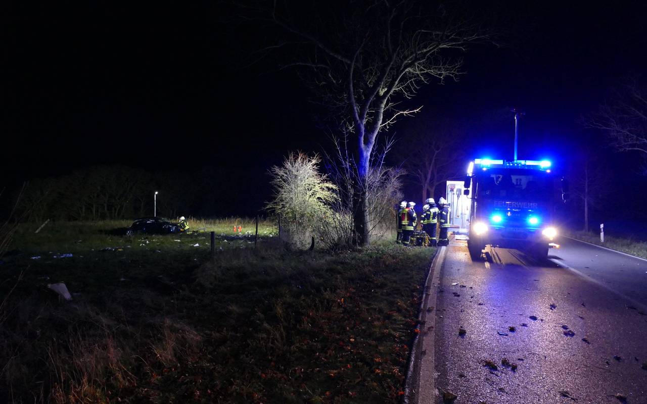 Der Wagen mit niederländischem Kennzeichen war wohl gegen 10 vor 11 am späten Abend in einer Rechtskurve von der Straße abgekommen und gegen einen Baum geprallt, dann mitten auf einem Feld gelandet. Der Feuerwehr präsentierte sich dann ein Trümmerfeld, sagte uns ein Sprecher. Die Rettungskräfte waren vom E-Call-System des Autos informiert worden. Es konnte den Standort sehr genau übermitteln. Sonst hätte man die Unfallstelle wohl nicht so schnell gefunden, heißt es. Es sind noch nicht alle drei Insassen identifiziert. Derzeit geht die Polizei von einem sogenannten Alleinunfall aus. Ein Spezialteam hat aber Spuren gesichert; auch eine Drohne der Feuerwehr Alfter war im Einsatz. Mögliche Zeugen werden gebeten, sich bei der Polizei zu melden.
