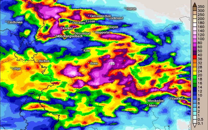 Über Teile des Rhein-Sieg-Kreises ziehen bereits Gewitter hinweg, so fiel in Troisdorf und Niederkassel Hagel, oder sie sind dorthin unterwegs, nach Rheinbach und Swisttal zum Beispiel. Insgesamt kommen wir aber wohl glimpflich davon - RBRS-Wetterexperte Karsten Brandt rechnet nur noch mit 20 bis 30 Liter Regen pro Quadratmeter für die Region, ursprünglich war mal von einhundert Litern die Rede. Es sei keine vollständige Entwarnung, heißt es von Donnerwetter.de, aber es dürfte nur noch ein mäßiges Überflutungs-Risiko geben.