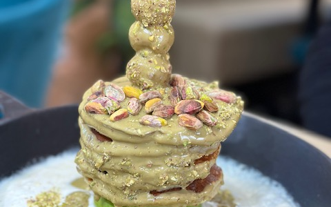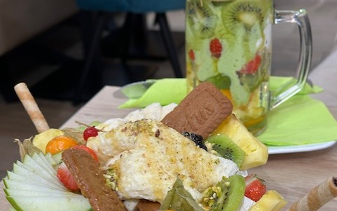 Für Liebhaber süßer Köstlichkeiten bietet das Bistro ebenfalls wahre Leckerbissen: Ein echtes Highlight ist der heiße Pistazien-Pancake, der direkt vor deinen Augen in einer gusseisernen Pfanne zubereitet wird. Mit Sahne, samtiger Pistaziencreme und knusprigen Pistazien wird dieser Pancake zu einem echten Genuss. Und nicht nur der Geschmack – auch das kunstvolle Arrangement lässt das Herz eines jeden Foodies höherschlagen. Perfekt für deinen nächsten Instagram-Post!