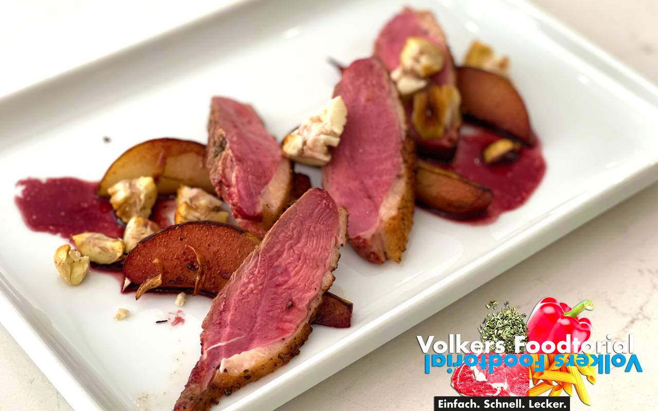 Volkers Foodtorial - Barbarie-Ente mit Birnen an Maronen & Glühwein