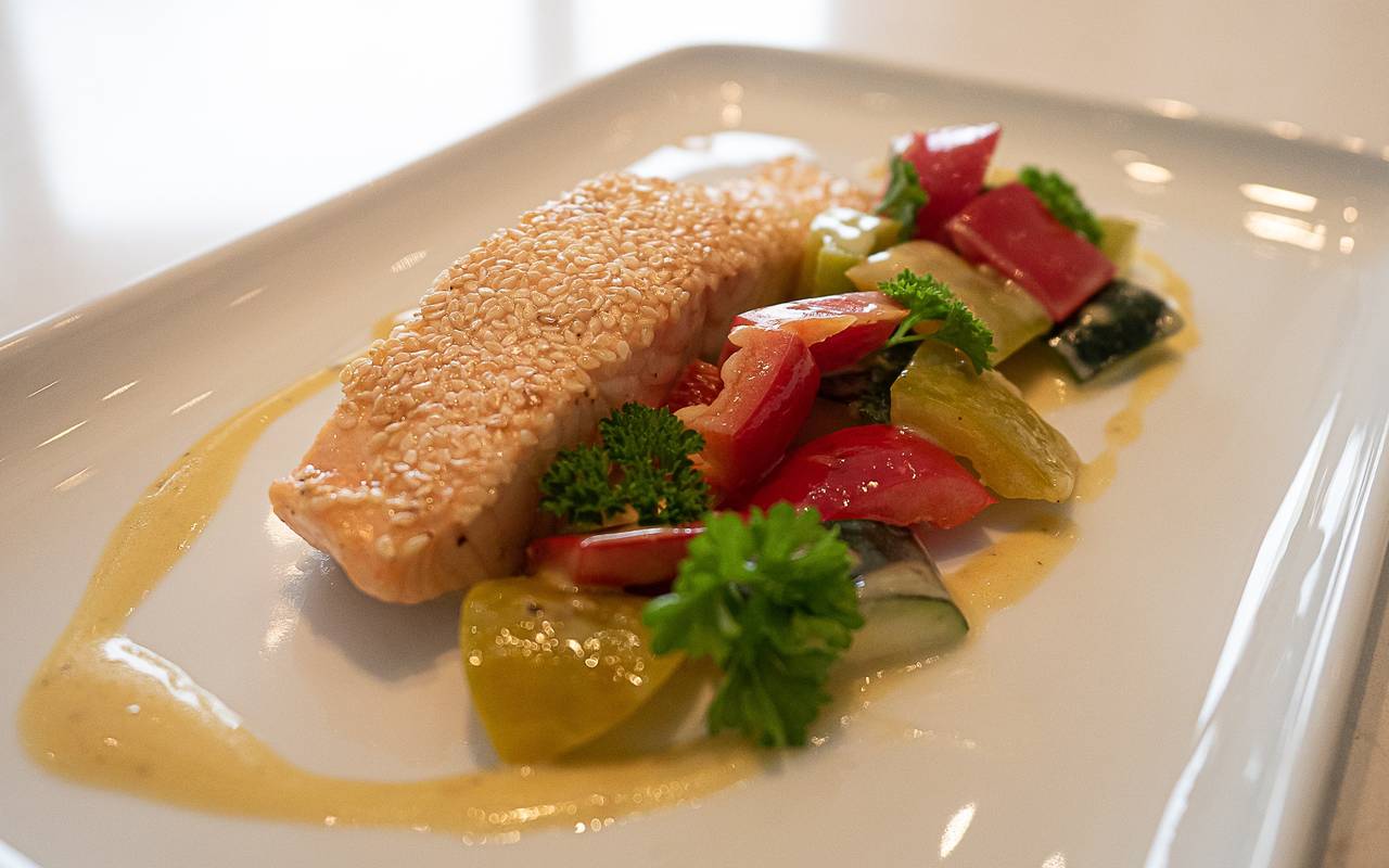 Mächtig was an oder auf der Pfanne: Volker und Klaus haben die Spülmaschine in den Kochateliers geschont und dieses Mal alles aus einer Pfanne gekocht: Lachs, Gemüse und eine schnelle Soße, das alles in drei Minuten und extrem lecker.
