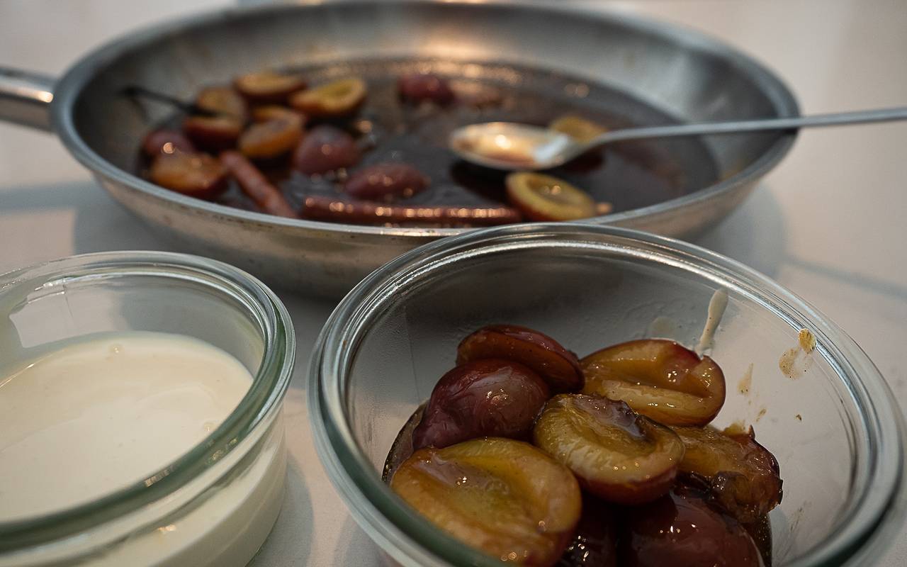 Ein leckeres heiß-kaltes Dessert: Volker und Klaus zeigen euch, wie man ganz schnell und einfach leckeres Eis macht. Mit den heißen Pflaumen wird das zu einem ganz besonderen Genuss!