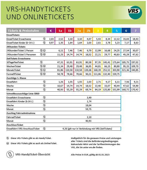 VRS-Tickets ab 1. Januar teurer