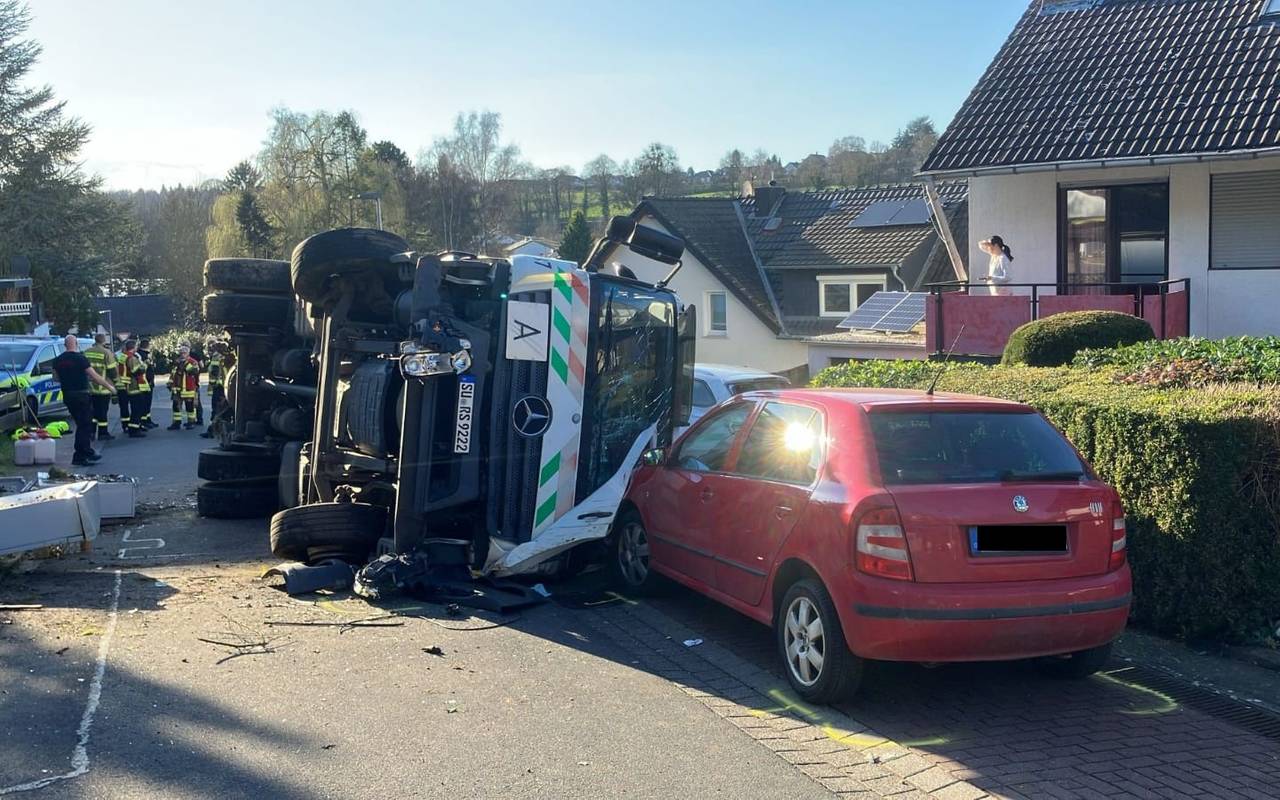 Wachtberg: Müllwagen überschlägt sich, zwei Verletzte