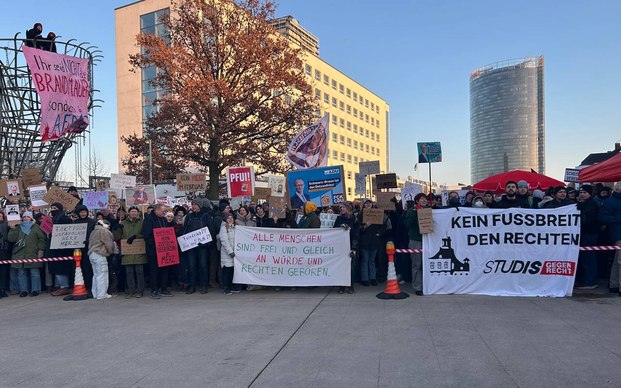 Rund 1.500 Menschen haben gestern gegen die Politik der CDU und ihres Bundeskanzlerkandidaten Merz demonstriert. Anlass war eine Wahlkampfrede von Friedrich Merz im Bonner WCCB. Dabei verliefen die Demonstrationen überwiegend friedlich; die Polizei musste aber auch eingreifen.