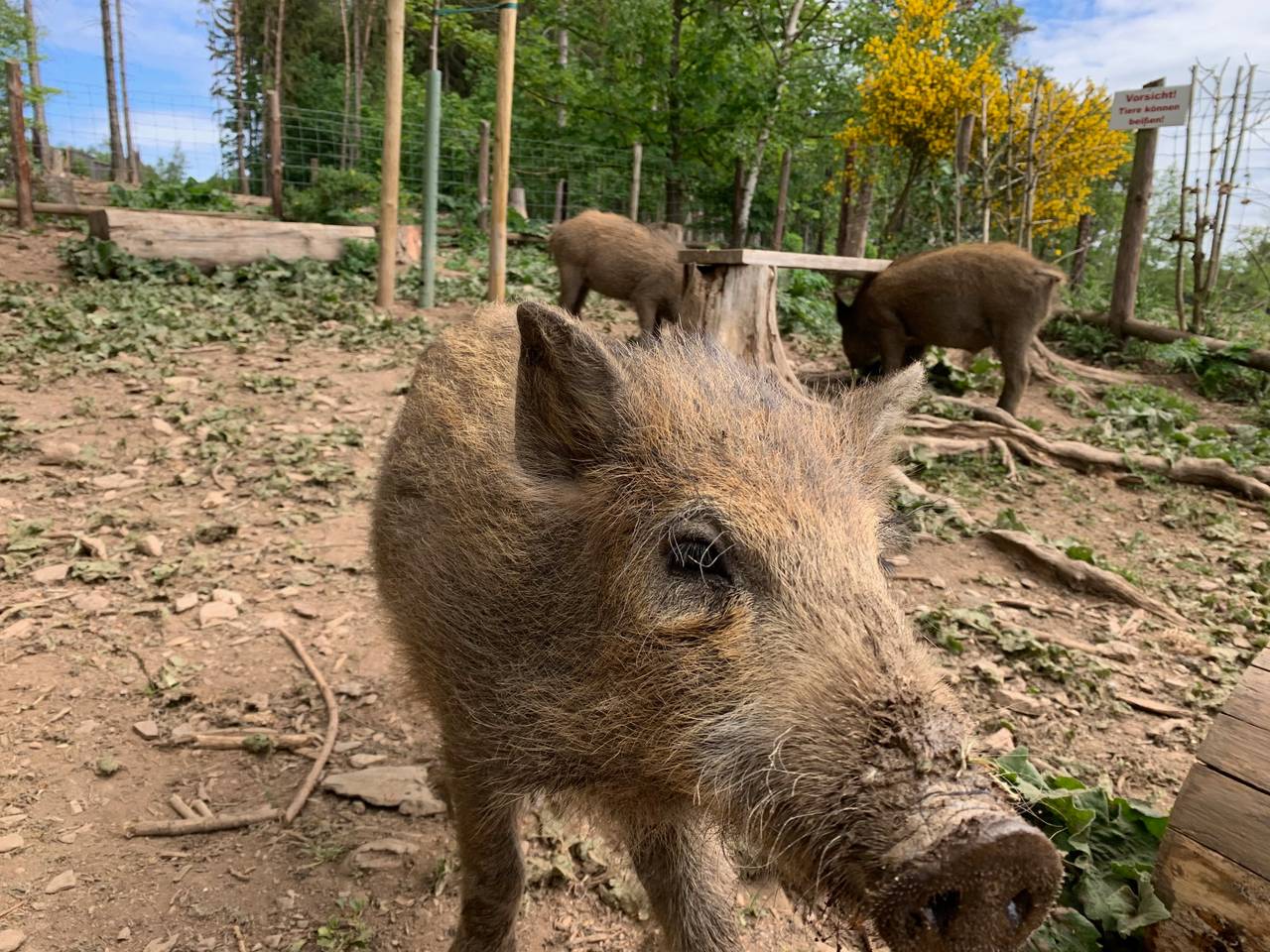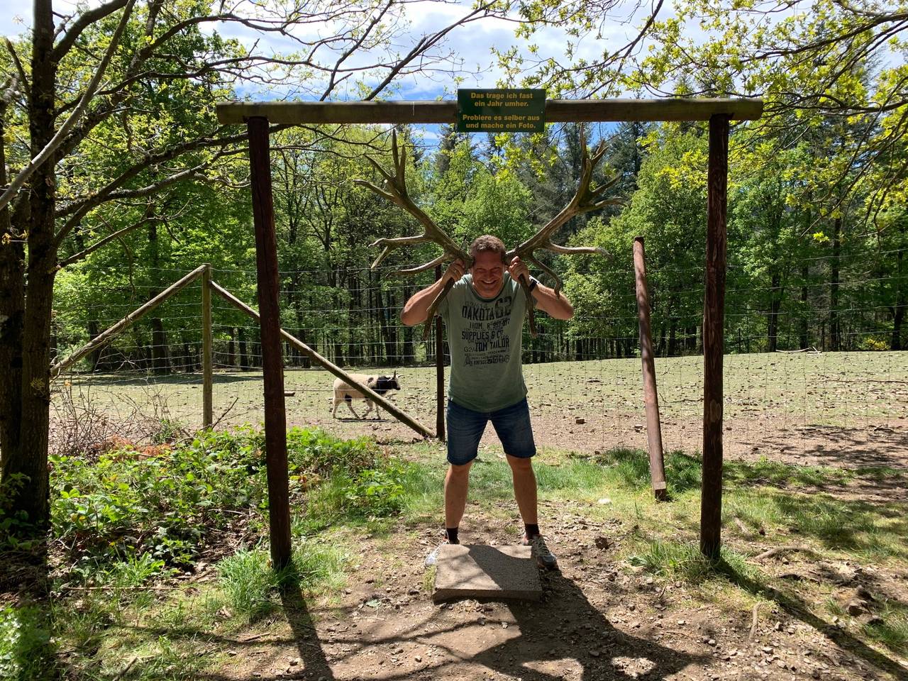 Im Wildgehege gibt es einen Rundweg auf dem ihr verschiedene Tiere sehen könnt. Rotwild, Damwild, Schwarzwild, Muffelwild, Luchse, Füchse, Waschbären und auch Wildpferde wohnen hier.