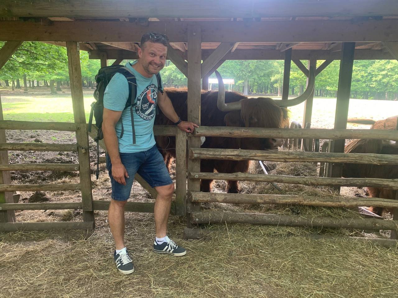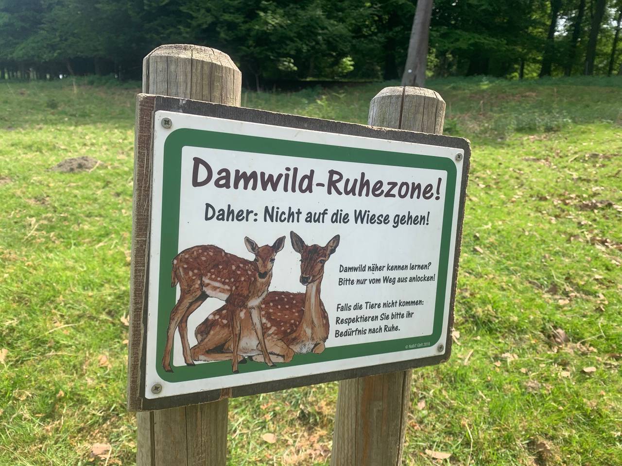 Aber dafür werdet ihr oben angekommen mit einem schönen Ausblick belohnt. Außerdem ist der Park wunderschön gestaltet und weitgehend naturbelassen, mit alten Bäumen und darin angelegten Wildflächen. Ein 2,5 km langer Rundwanderweg führt vorbei an verschiedenen Tieren. Zu sehen sind heimische Wildtiere wie Rotwild, Damwild, Mufflons und Wildschweine. Außerdem sind im Park auch einige Haustierrassen wie Schafe, Ziegen, Esel, Ponys, Hochlandrinder und Kaninchen Zuhause. Diese leben weitgehend unter natürlichen Gegebenheiten auf ausgedehnten Flächen mit Rückzugsmöglichkeiten in abgelegenere Ruhezonen. Wildschweine und Hochlandrinder sind durch Zäune abgetrennt, die übrigen Wildarten von den Wanderwegen aus frei zu beobachten.