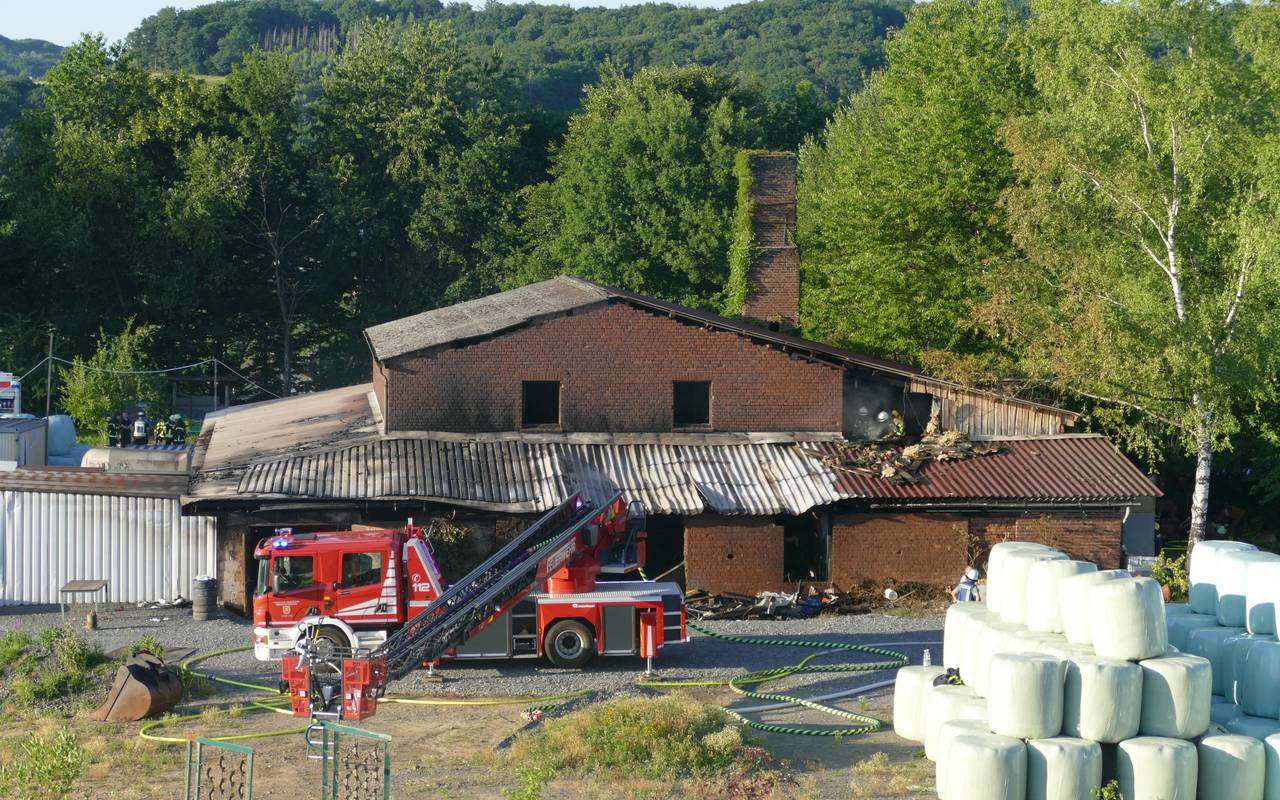 Als die Feuerwehr ankam, hatten die Flammen schon auf die Halle übergegriffen – so wurde es eine große Herausforderung für die Einsatzkräfte, die auch Verstärkung dazuriefen. Das musste auch die Polizei tun, weil sich Anwohner über die Anweisungen der Beamten hinwegsetzten und im abgesperrten Gefahrenbereich herumliefen. Bei dem Einsatz wurden zwei Feuerwehrleute verletzt, sie mussten ins Krankenhaus, wegen des Qualms und wegen Kreislaufproblemen. Auch das THW war vor Ort, weil die Halle durch Feuer einzustürzen drohte. Gegen 23 Uhr endete der Einsatz.