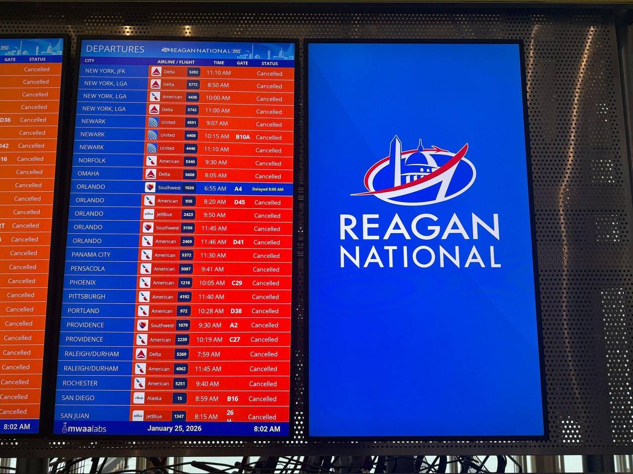 Übers Wochenende seien auch mehr als 15.000 Flüge gestrichen worden, berichtete CNN. Auf Fotos aus der US-Hauptstadt Washington waren menschenleere Terminals zu sehen.