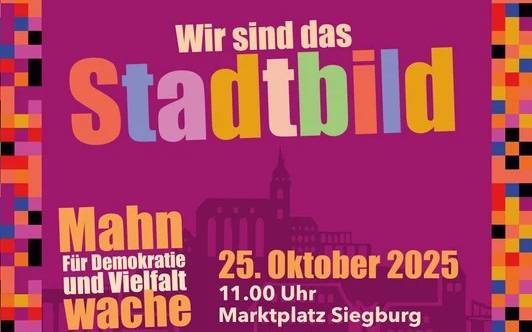 Unter dem Motto "Wir sind das Stadtbild" hat die Initiative "Siegburg zeigt Haltung" dazu aufgerufen. Damit wollen die Teilnehmer auf dem Siegburger Marktplatz ein Zeichen für Vielfalt und Demokratie setzen. Los geht die Mahnwache zum "Stadtbild" in Siegburg um 11 Uhr!