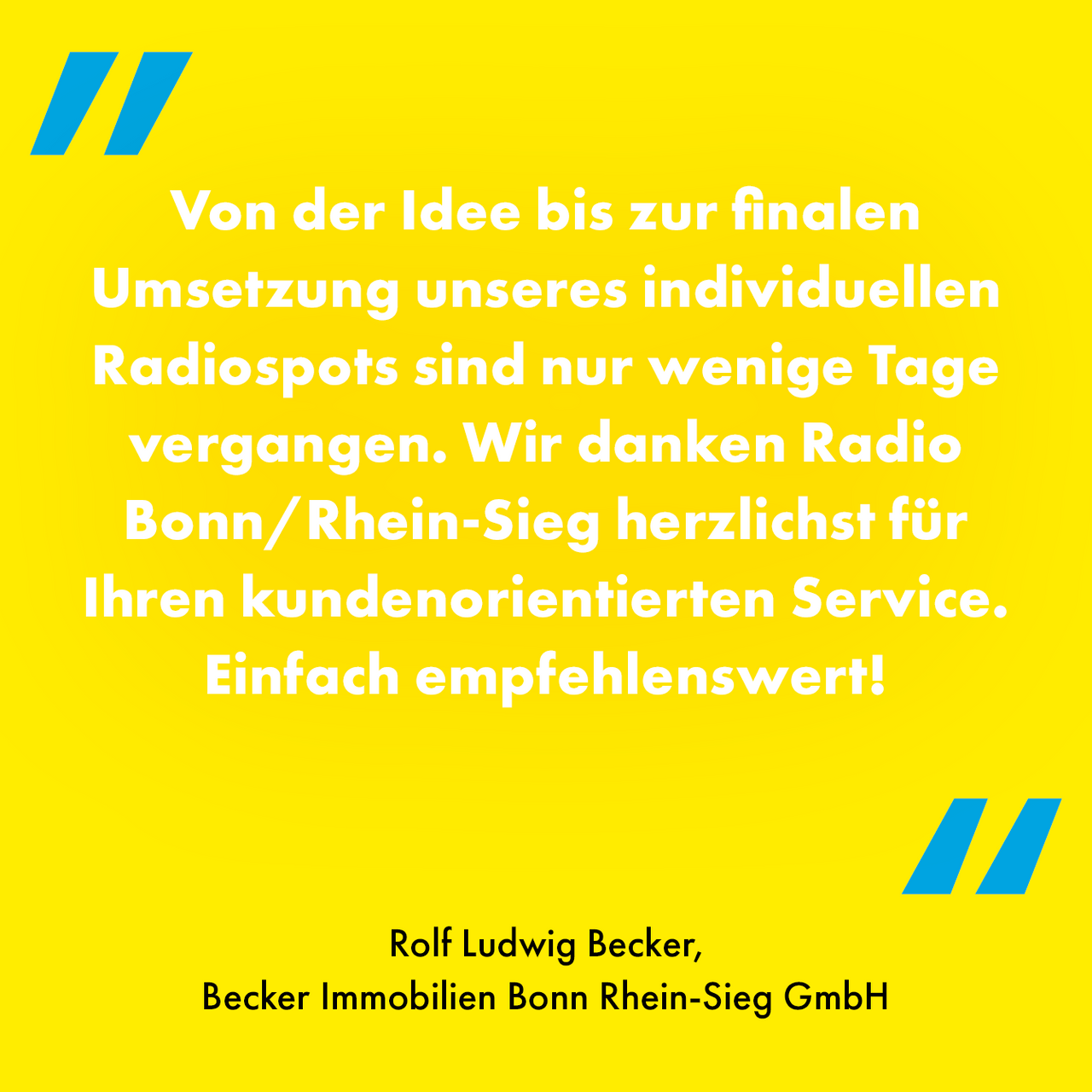 Als das Sprachrohr der Region sorgen wir für die Bekanntmachung eurer Produkte, Aktionen und Dienstleistungen. Wir helfen euch neue Mitarbeiter zu finden und euer Events zu bewerben. Nutzt den meist gehörten Sender in Bonn und dem Rhein-Sieg Kreis zu eurem Vorteil und erreicht mit uns viele Menschen in kürzester Zeit.